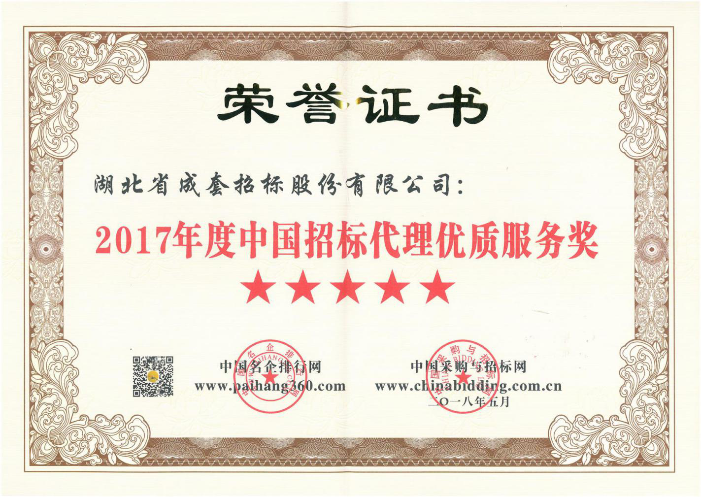 2017年度中国招标代理优质服务奖(五星)