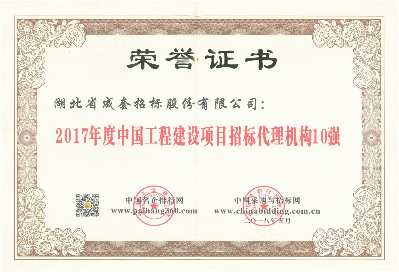 2017年度中国工程建设项目招标代理机构10强