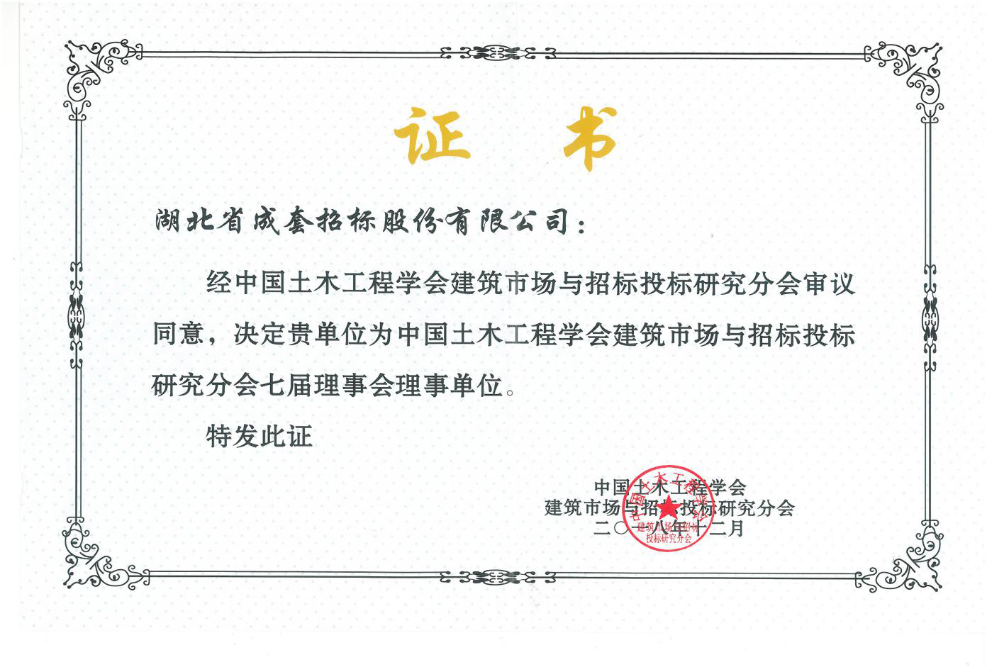 中国土木工程学会建筑市场与招标投标研究分会七届理事会理事单位