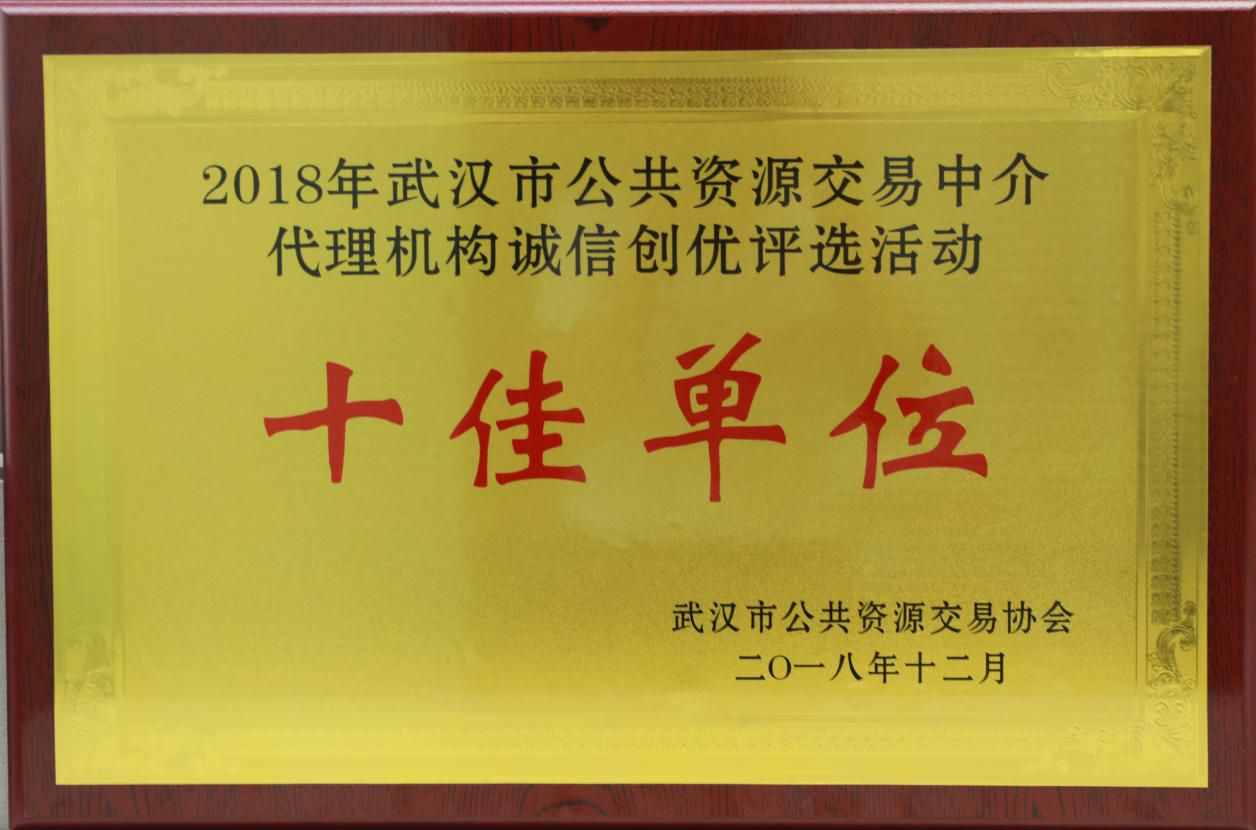 2018年武汉市公共资源交易中介代理机构诚信创优评选活动“十佳单位”