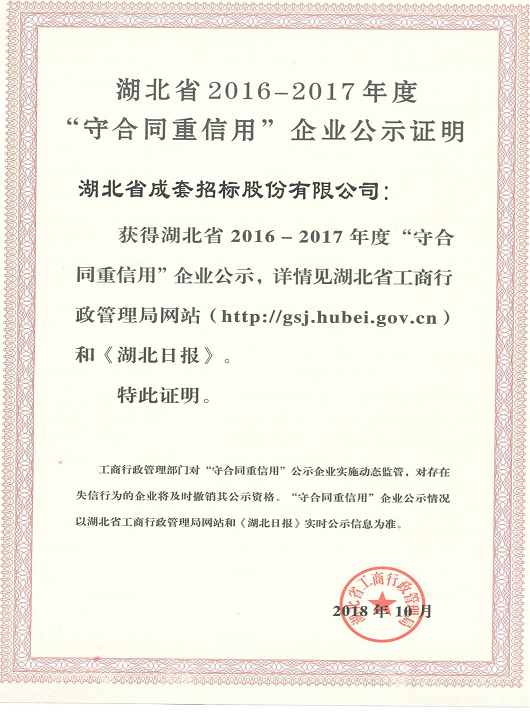 2016-2017年度“守合同、重信用”企业