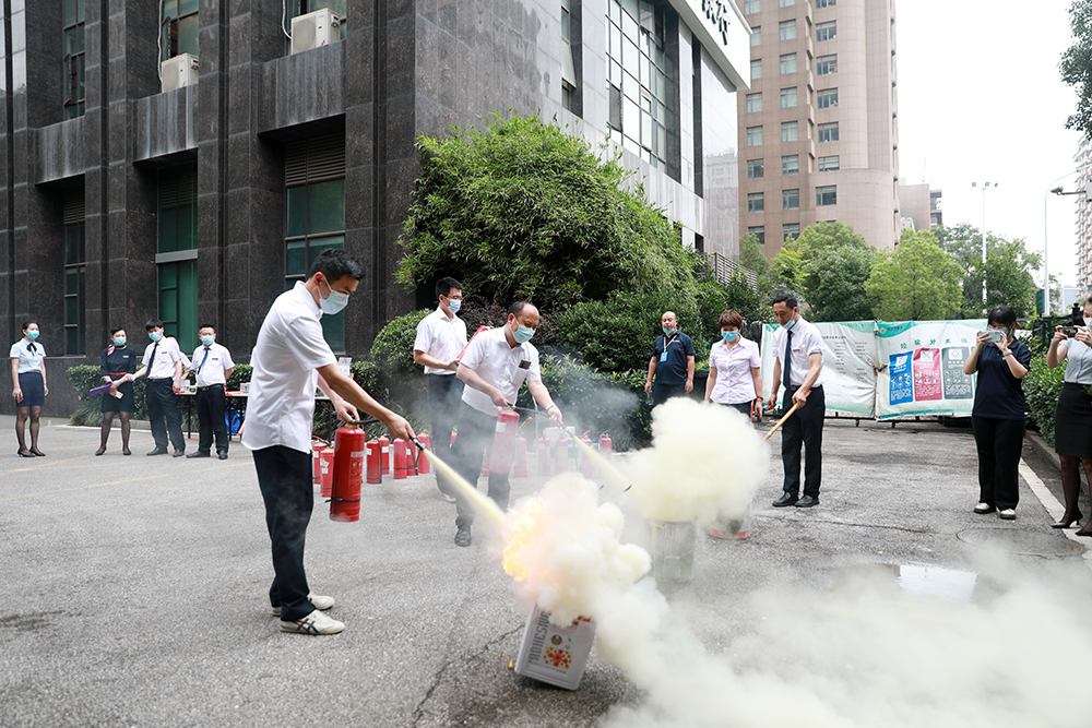 在演练现场,公司参与演练的员工学习了火灾预防、火场自救及逃生方法等消防安全基本常识,在办公大楼里模拟了突发火情的应急处理流程,并对灭火器的正确使用进行了实操演练。