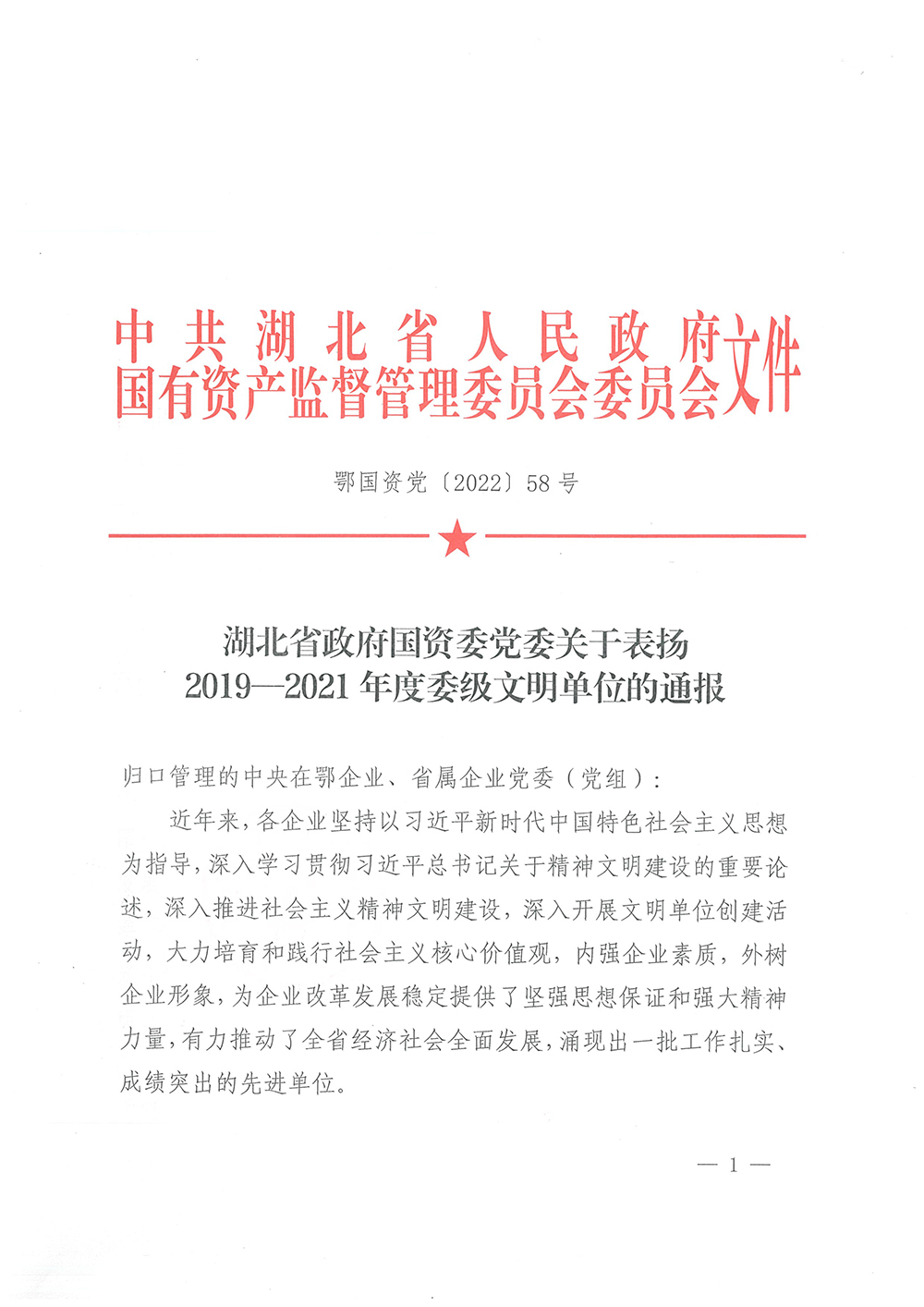 近日,成套公司继2019年荣获“文明单位”后,又顺利通过省政府国资委“2019-2021年度委级文明单位”复审,继续保留“委级文明单位”荣誉称号。