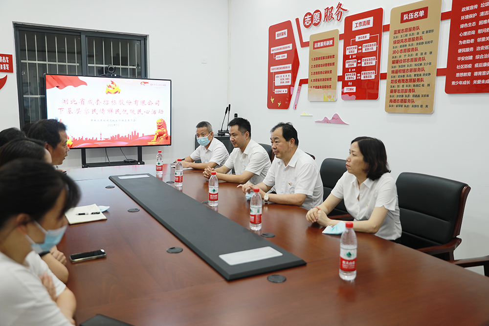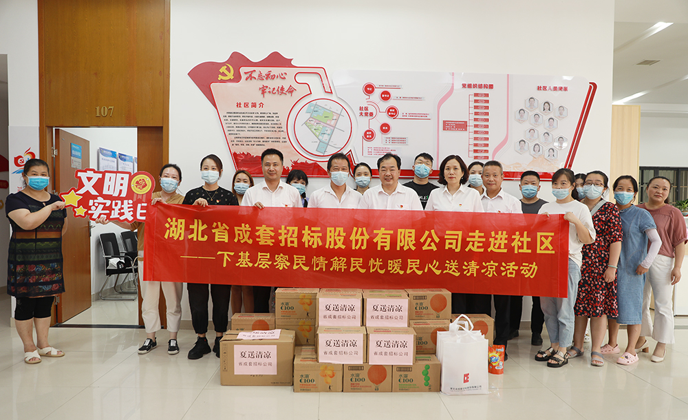 为扎实开展省属企业党员干部下基层察民情解民忧暖民心实践活动,落实党员干部“双报到双报告”工作,成套公司党委迅速组织,由党委书记黄泽旺带队,于7月26日下午,到水果湖街姚家岭社区开展了“走进社区送送清凉”活动。