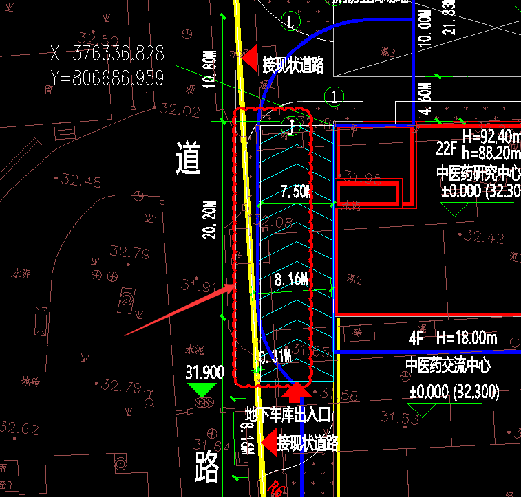 6、地库西侧坡道处地库外墙线距规划用地红线最近0.4m,支护需出用地红线,请甲方复核;