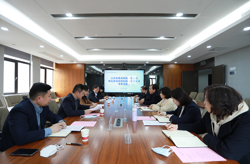 3月1日,山东省鲁成招标有限公司(以下简称“山东鲁成”)董事长、总经理马郡婕,副总经理程忠等一行五人到成套公司开展考察与交流活动。公司党委书记、董事长黄泽旺,党委委员、副总经理刘艳旸以及职能部门负责人参加交流会。