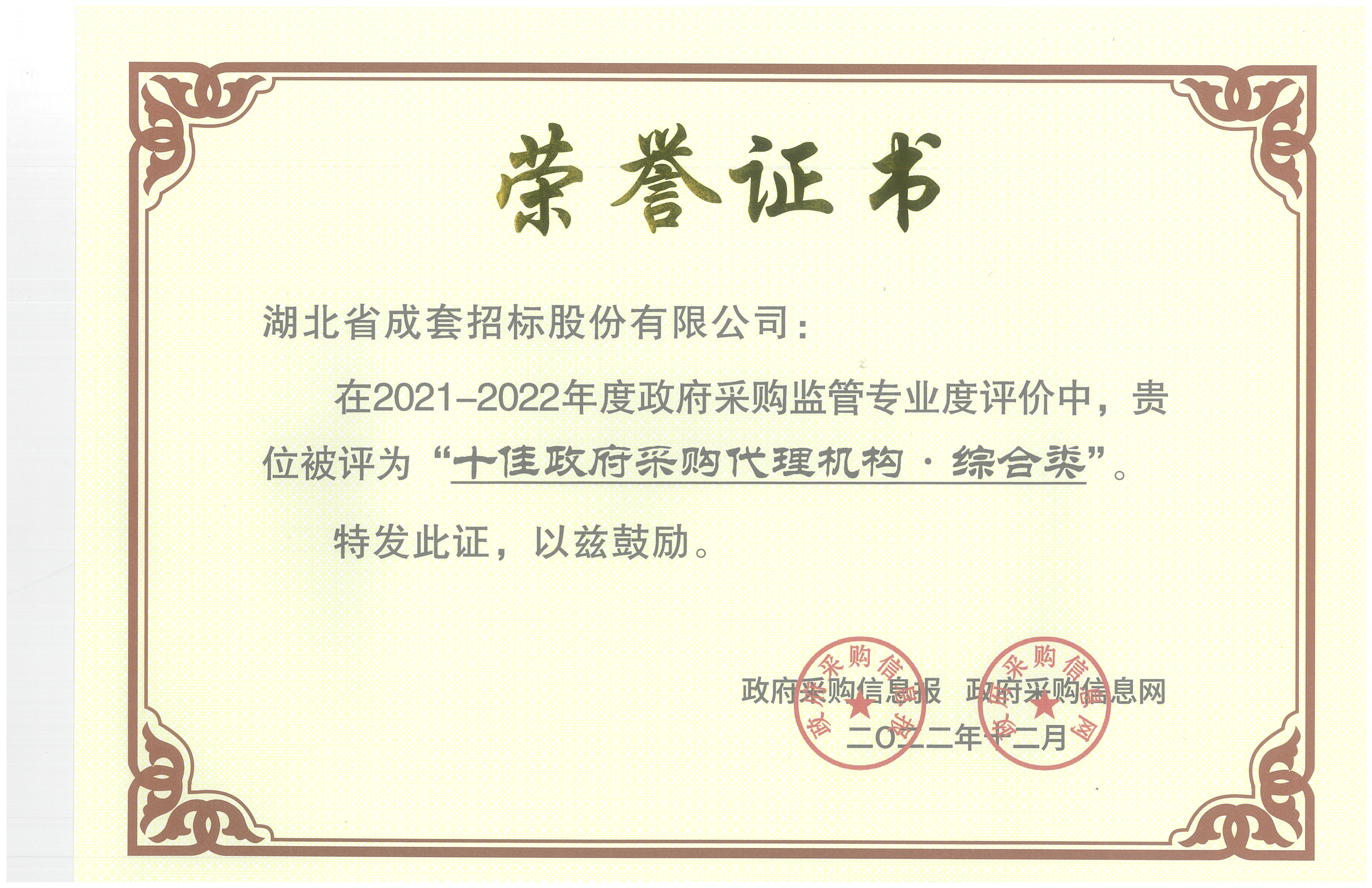 该荣誉由政府采购信息报、政府采购信息网联合主办的“2021-2022年度政府采购监管专业度评价”活动颁发。经过严格的评审,评审组认定公司内部制度健全、人员专业化素质高,代理的政府采购项目业绩突出,受到采购人广泛好评。此次获奖,既是对公司专业实力的肯定,也进一步提升了成套品牌在行业内的影响力。