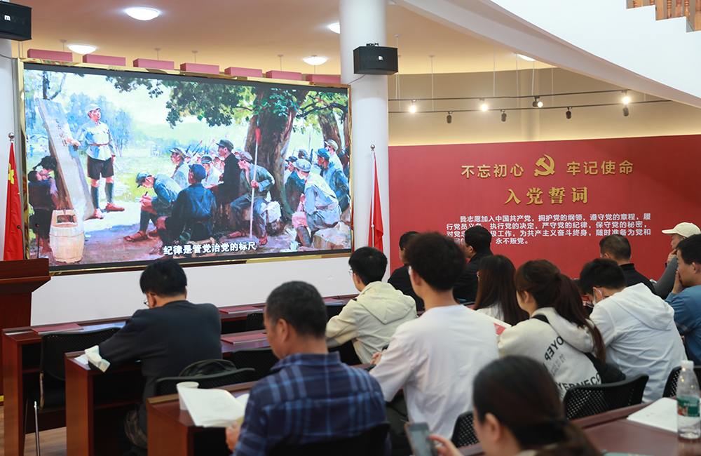 在大别山精神红色文化展览馆,公司党员干部跟随“曙光初照大别山——星火燎原鄂豫皖——千里跃进迎解放”历史卷轴,通过一张张泛黄照片,一段段红色故事,重温了鄂豫皖革命根据地波澜壮阔的光辉历史,缅怀了革命先烈们的丰功伟绩。大家还通过观看红色影片,重走红军路,切身实地接受“大别山精神”的洗礼,坚定了全体党员干部不忘初心,永远跟党走的理想信念。