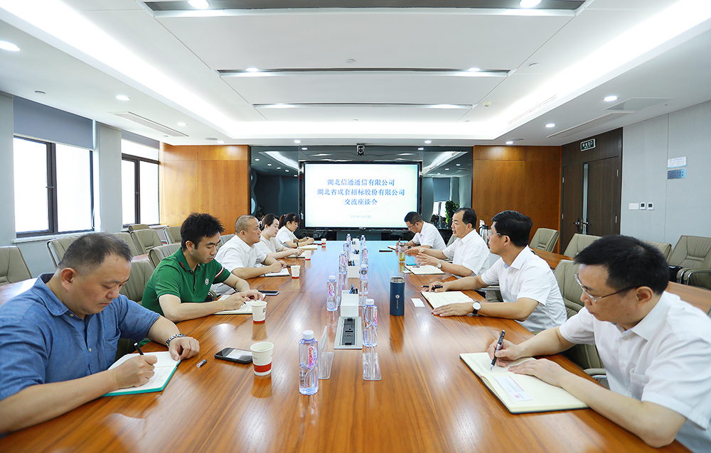 7月27日,湖北省信通通信有限公司招标部总经理徐勇等一行5人到成套公司调研座谈。公司党委书记、董事长黄泽旺,副总经理李启发出席会议并开展交流,相关职能部门负责人参加座谈。