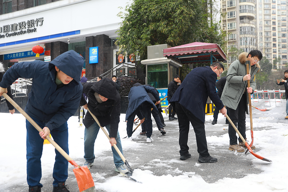 2月22日,武汉市低温雨雪冰冻天气持续,给出行带来了诸多不便。为贯彻落实省委组织部《关于在防范应对低温雨雪冰冻灾害中充分发挥基层党组织战斗堡垒作用和广大党员先锋模范作用的通知》精神,成套公司党委迅速集结党员干部,开展铲雪除冰志愿行动,全力铲除公司办公大楼周边路面的积雪障碍,保障了道路通畅和人员出行安全。