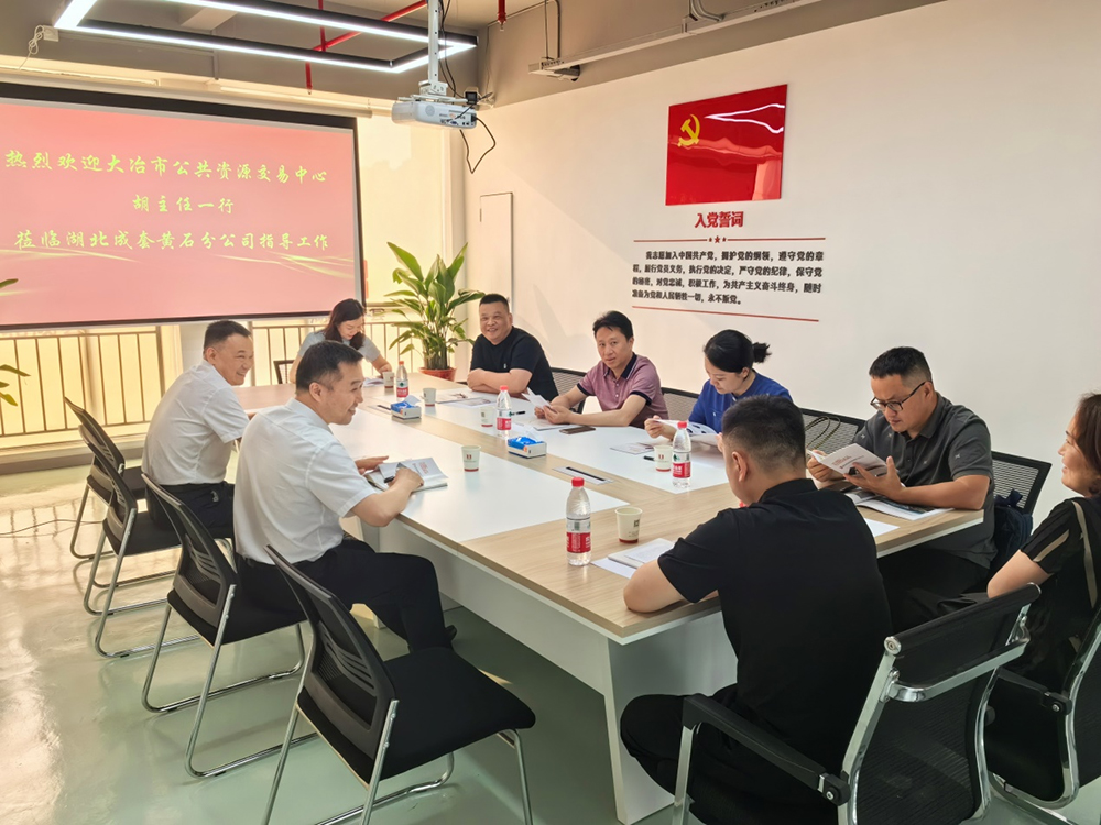 近日,大冶市公共资源交易中心(政府采购中心)党组书记、主任胡耀中携领导班子全体成员到伟德国际1946黄石分公司调研(以下简称“黄石分公司”)。