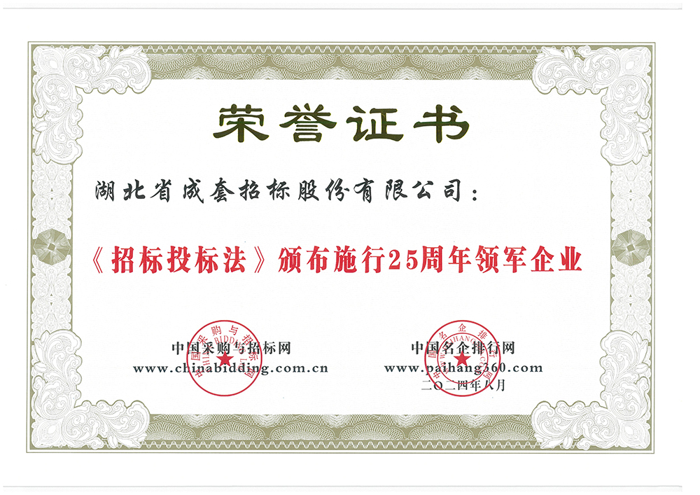 该评选活动在全国招投标领域具有广泛影响力。此次获奖是行业对公司在招投标领域深耕细作、守正创新的高度认可,也是对“湖北成套”长期以来践行国企担当、履行社会责任、推动行业发展的充分肯定。